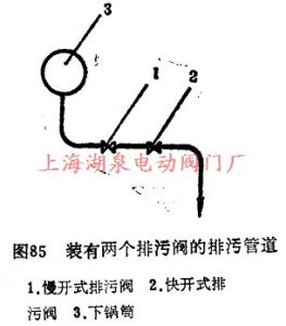 装有两个串联排污阀的排污管道怎样排污? 答: 在装有两个串联 排污阀 的排记管道上排污时,开关阀门的操作方法有两种,如图85所示。...