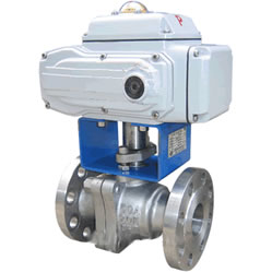 Q941F 型 PN16~PN63 法兰连接浮动软密封球阀:电动驱动、法兰连接形式、浮动球直通式,密封形式采用软密封、阀座密封面材料为氟塑料,公称压力 PN16~PN63、公称尺寸 DN15~DN200、适用温度为 -28~300℃,阀体材料为碳素钢或不锈钢。