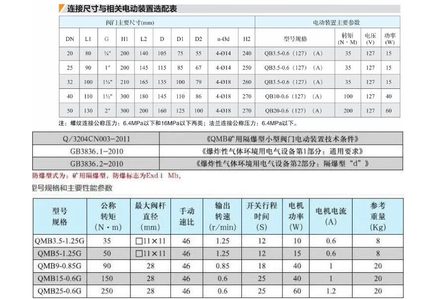永利yl23411集团官网入口矿用小口径电动球阀是一种由球体旋转而开闭水路的新型矿用隔爆型电动球阀(以下简称电动球阀),由于其适应的供水压力范围广、不受泥沙、污水影响、供水通径大、工作过程中通电时间短、工作稳定可靠、是一种代用电磁阀的理想替代产品。 防爆型式:隔爆型;防爆标志:ExdⅠ,是一种由球体旋转而开闭水路的新型矿用隔爆型电动球阀(以下简称电动球阀),由于其适应的供水压力范围广、不受泥沙、污水影响、供水通径大、工作过程中通电时间短、工作稳定可靠、是一种代用电磁阀的理想替代产品。 防爆型式:隔爆型;防爆标志:ExdⅠ。 执行标准:Q/ZLH07-2008、MT/715-1997标准。 正常工作条件: 电动阀应在下列条件下可靠的工作: 海拔高度不超过2000m; 环境大气压80-110kPa; 环境温度-20-+40℃; 周围空气相对湿度不大于95%(25℃时); 具有甲烷混合物及煤尘爆炸危险的煤矿井下; 在无显著振动的地方; 在无破坏金属绝缘的气体和蒸气的环境; 在无滴水的地方。是一种由球体旋转而开闭水路的新型电动阀门,它由数字逻辑控制电路,方向控制电路,电流采样控制电路,工作状态指示电路等组成;接入24VDC电源后,控制端K1、K2有继电器无源点控制球阀的开启与关闭,K1与K2短接球阀打开,K1与K2断开球阀关闭。由电流采样控制电路检测球阀的工作位置, 工作状态指示电路指示球阀的工作状态: 球阀旋转开启,绿色LED亮;当开启到设定口径时,黄灯亮(此时电机不耗电);当球阀旋转关闭时,红灯亮(此时电机不耗电)。 四.主要技术参数 1. 防爆标志: ExdⅠ 2. 输入电压: 24V DC. 3. 工作电流: ≤70mA DC. 4. 环境温度: 0℃~40℃ 5. 环境湿度: ≤95%RH.(25℃时) 6. 大气压力: 80~110kPa 7. 水压适应范围 : 0.2MPa~7.0MPa。 8. 水温适应范围 : 0~60℃ 9. 球阀开启速度 : 6s~12s 10。