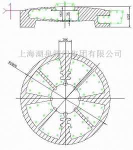 一、大型电动蝶阀结构分析 (1)此蝶阀属园饼形结构,内部空腔由8根加强筋连接支撑,顶部620孔与内腔相通,其余部分均为封闭形状,砂...